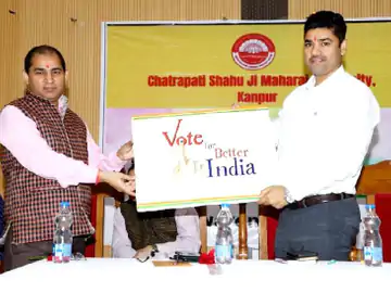 कानपुर। गुरुवार को छत्रपति शाहूजी महाराज विश्वविद्यालय, में जिला निर्वाचन कार्यालय के संयुक्त तत्वाधान में मतदाता जागरूकता कार्यक्रम का आयोजन बिजनेस मैनेजमेंट विभाग के ऑडिटोरियम में आयोजित किया गया। कार्यक्रम का शुभारंभ प्रतिकुलपति प्रो. सुधीर कुमार अवस्थी, अपर जिलाधिकारी डॉ. राजेश कुमार, कुल सचिव डॉ. अनिल यादव, निदेशक प्रो. अंशु यादव, एससीएम रितुप्रिया, प्रो. नीरज सिंह एवं स्वीप कोऑर्डिनेटर डॉ. सुधांशु राय द्वारा किया गया। कार्यक्रम की अध्यक्षता करते हुए प्रति कुलपति प्रो. सुधीर कुमार अवस्थी ने सभी छात्रों को वोट के महत्व को बताया। उन्होंने कहा यह सभी व्यक्तियों का नैतिक दायित्व है कि वह वोटर बने और मतदान समय पर वोट डालें। विशिष्ट अतिथि अपर जिलाधिकारी डॉ. राजेश कुमार ने कहा कि एक जनवरी 2024 तक जो भी विद्यार्थी 18 वर्ष की आयु पूर्ण कर लेंगे वे सभी वोटर बन सकते हैं, उन्होंने कहा वोट डालना आपका अधिकार है। कुलसचिव डॉ. अनिल यादव ने कहा विश्वविद्यालय परिसर में सभी छात्र-छात्राओं को वोटर बनने के लिए प्रेरित किया जा रहा है। इसके लिए परिसर में मतदाता पंजीकरण कैंप भी लगाया गया है। निदेशक प्रो. अंशु यादव ने कहा वोट डालने के बाद उंगली पर लगा निशाना आपको गर्व की अनुभूति कराता है। कार्यक्रम संयोजक स्वीप कोऑर्डिनेटर डॉ सुधांशु राय ने कहा कि मतदाता जागरूकता कार्यक्रम दो चरणों में आयोजित किया जाता है। पहले चरण में मतदाता बनने के लिए एवं दूसरे चरण में मतदान करने के लिए, उन्होंने कहा आपकी रचनात्मकता और प्रतिभागिता से हमारा शहर कानपुर मतदान में सबसे आगे रहेगा। एसीएम 6 रितु प्रिया ने विद्यार्थियों में उत्साह भरते हुए कहा कि आपके प्रयास से इस बार हमारा शहर शत प्रतिशत मतदान करेगा। इस अवसर पर मतदान क्विज की अध्यक्षता करते हुए एसीएम रितुप्रिया ने कार्यक्रम के अंतर्गत आयोजित स्लोगन, पोस्टर मेकिंग और क्विज कंपटीशन के विजेताओं को पुरस्कार भी दिए।विश्वविद्यालय की कैंपस एंबेसडर देवांशी द्विवेदी ने पीपीटी प्रेजेंटेशन दिया एवं विश्वविद्यालय के एनएसएस कार्यक्रम अधिकारी डॉ. स्नेहा पांडेय, डॉ. पुष्पा मेमोरिया, प्रभारी सुमन वर्मा एवं एमबीए छात्र विवेक, सिद्धि, मयंक मिश्रा एवं सोनाक्षी द्वारा मतदान के महत्व पर भाषण भी दिया गया। कार्यक्रम का संयोजन डॉ. गौरी सिंह और डॉ. सोनम गुप्ता द्वारा किया गया। कार्यक्रम का संचालन रेंज रोवर संस्कार मिश्रा एवं कैंपस एंबेसडर देवांशी द्विवेदी द्वारा किया गया। क्विज का आयोजन हर्षित इशिता और वंशिका द्वारा किया गया। विश्वविद्यालय के म्यूजिकल बैंड तरंग ने अपनी प्रस्तुति से उपस्थित लोगों का मन मोह लिया l इस अवसर पर डॉ. विवेक सचान, सुमन वर्मा, डॉ. चारू खान, डॉ. राज