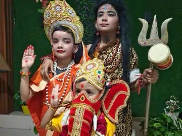 शिव महापुराण कथा के दौरान बच्चों की मनमोहक झांकियां दिखाई गई व शिव पार्वती विवाह का मंचन भी किया गया।