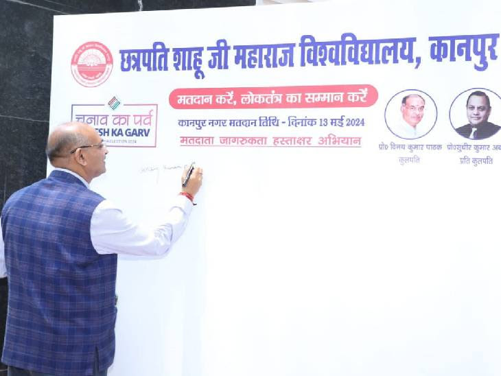 कानपुर। नगर में छत्रपति शाहूजी महाराज विश्वविद्यालय, में मतदाता जागरूकता अभियान के अंतर्गत गुरुवार को हस्ताक्षर अभियान का आयोजन किया गया। कार्यक्रम का शुभारंभ कुलपति प्रो. विनय कुमार पाठक, प्रति कुलपति प्रो. सुधीर कुमार अवस्थी, कुलसचिव डॉ. अनिल कुमार यादव, वित्त अधिकारी अशोक कुमार त्रिपाठी, परीक्षा नियंत्रक राकेश कुमार द्वारा हस्ताक्षर कर किया गया। कुलपति प्रो. विनय कुमार पाठक ने कहा लोकतंत्र में मतदान का अधिकार प्रत्येक व्यक्ति को प्राप्त है तो वही हर व्यक्ति का यह सामाजिक दायित्व भी है कि वह अन्य मतदाताओं को मतदान करने के लिए जागरूक करें। उन्होंने विश्वविद्यालय के छात्र-छात्राओं के साथ-साथ पुरातन विद्यार्थियों से भी अपील करी कि आप शत प्रतिशत मतदान करें और लोकतंत्र का सम्मान करें। उन्होंने कहा आपका मतदान आपको एक जिम्मेदार और जागरूक नागरिक के रूप में स्थापित करेगा। प्रति कुलपति प्रो. सुधीर कुमार अवस्थी ने कहा कि मतदान करना हमारी और आपकी जिम्मेदारी है। हम सबको अपनी जिम्मेदारी का एहसास होना चाहिए।कुलसचिव डॉ. अनिल कुमार यादव ने विद्यार्थियों और कर्मचारियों से कहा कि लोकतंत्र के इस महापर्व को उत्सव के रूप में मनाए और मतदान में बढ़-चढ़कर हिस्सा लें। वित्त अधिकारी अशोक कुमार त्रिपाठी ने कहा कि हमारा नैतिक दायित्व है कि हम मतदान के महत्व से जनमानस को भी जागरूक करें। परीक्षा नियंत्रक राकेश कुमार ने कहा कि लोकतंत्र हमारे देश को एक सशक्त स्वरूप प्रदान करता है और हमें इसका सम्मान करना है। स्वीप कोऑर्डिनेटर डॉ. सुधांशु राय द्वारा मतदाता जागरूकता हस्ताक्षर अभियान का संयोजन किया गया था। इस अवसर पर अधिष्ठाता छात्र कल्याण प्रो. नीरज सिंह, उप कुलसचिव अजय गौतम, राकेश कुमार, अंजली मौर्य, लेखाधिकारी जितेंद्र वर्मा, सिस्टम मैनेजर डॉ. सरोज द्विवेदी, संपत्ति अधिकारी डॉ. प्रवीण पटेल, कार्यक्रम अधिकारी डॉ. स्नेह पांडेय, डॉ. राजकुमार, डॉ. शिल्पी दुबे, सहायक कुल हिमांशु शुक्ला, हरिओम शुक्ला, शिव कुमार सहित विभिन्न विभागाध्यक्ष, शिक्षकगण, कर्मचारीगण व छात्र-छात्राएं उपस्थित रहे।
